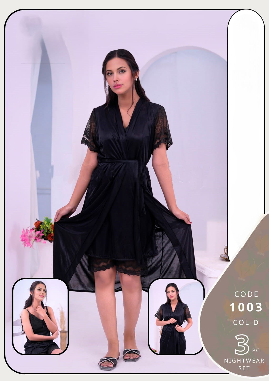 Product Title: Classic Satin & Lace 3-Piece Nightwear Set.